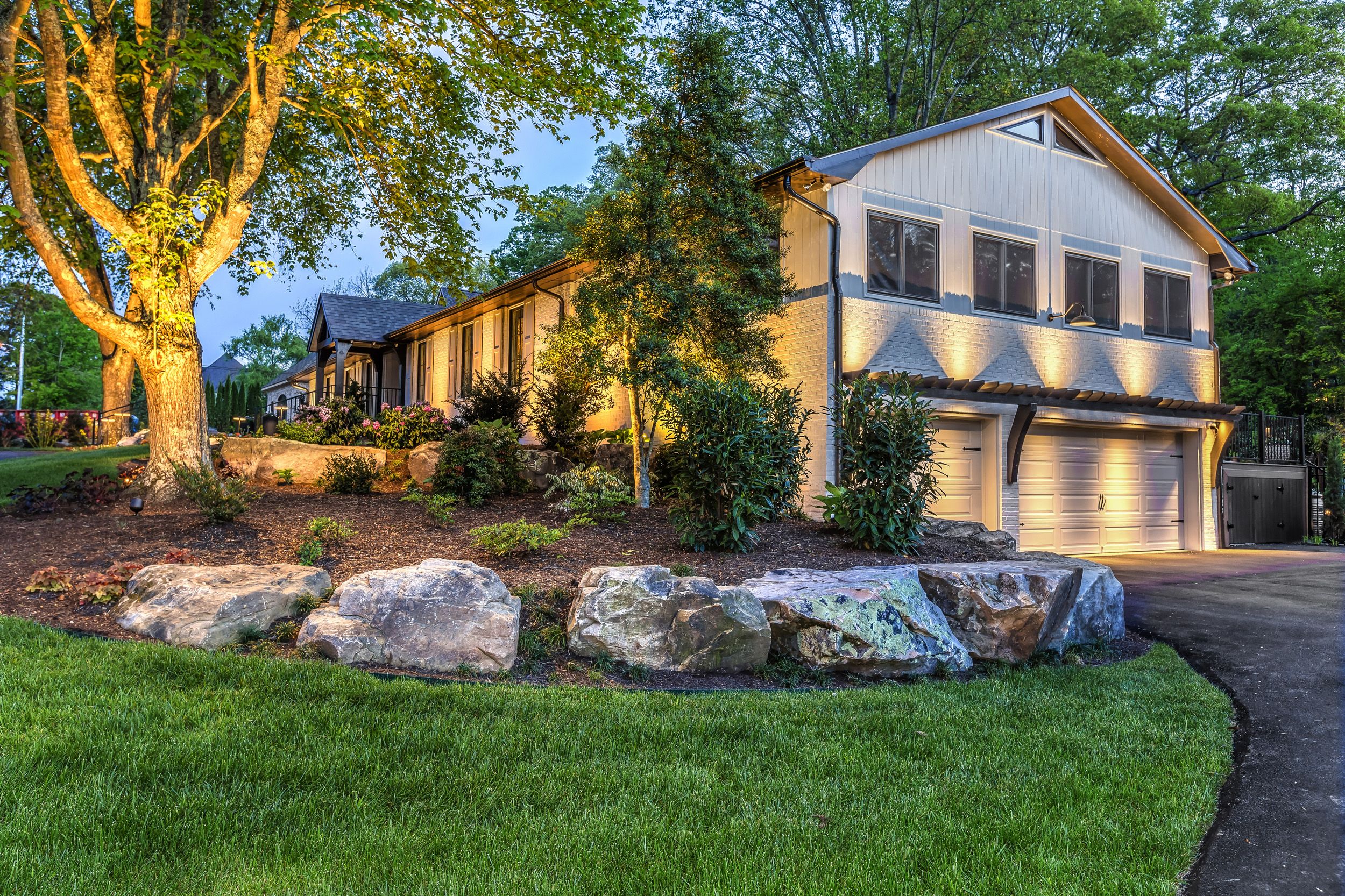During our landscape lighting installation process, we prioritize architecture first—revealing form, balance, and proportion after dark, without overpowering the beauty of your Smoky Mountains home.